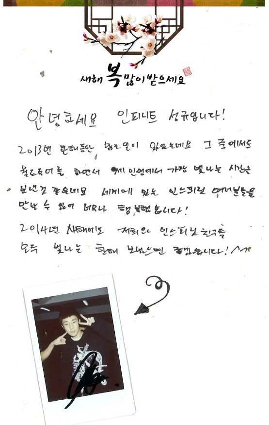 批尼兔在NAVER NEWS專題"Goodbye 2013, INFINITE未公開照片無限大放出!"裡面的手寫留言